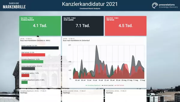 Über den Kanzlerkandidaten der Union, Armin Laschet, wird insgesamt am meisten berichtet. Hier zeigt sich vor allem ein medialer Höhepunkt rund um die Berichterstattung zur Flutkatastrophe. SPD-Kandidat Olaf Scholz kommt auf den zweiten Platz. Über Grünen-Kandidatin Annalena Baerbock wurde am wenigsten berichtet. Keiner der KandidatInnen wird im Umfang der Berichterstattung allerdings eindeutig benachteiligt.